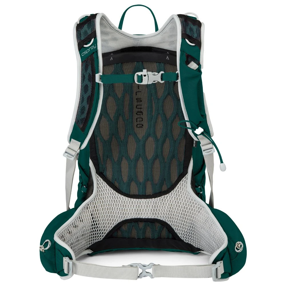 Le panneau arrière AirScape est moulé par injection avec renforts EVA permet d’amortir les secousses et de faire circuler l’air au niveau du dos. Une sangle amovible est incluse pour accrocher bâton de marche ou piolet, des poches latérales peuvent recevoir une gourde pour l’avoir à portée de main et une poche interne est compatible avec le système d’hydratation Hydraulics. Conçu avec une part de matières recyclées, ce modèle tend à limiter l’impact de sa fabrication sur l’environnement.